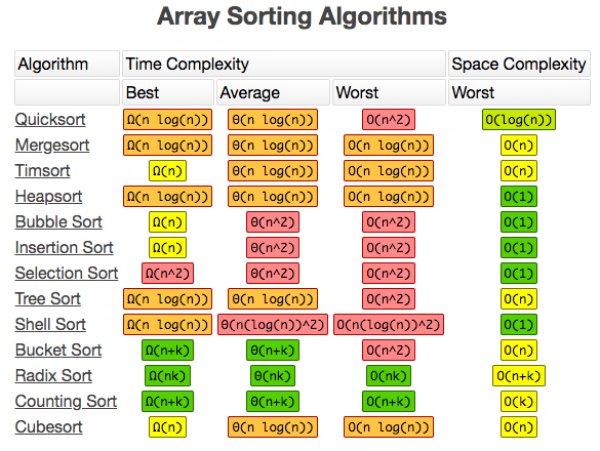 - Quasilinear - O(nlogn), such as for sorts.